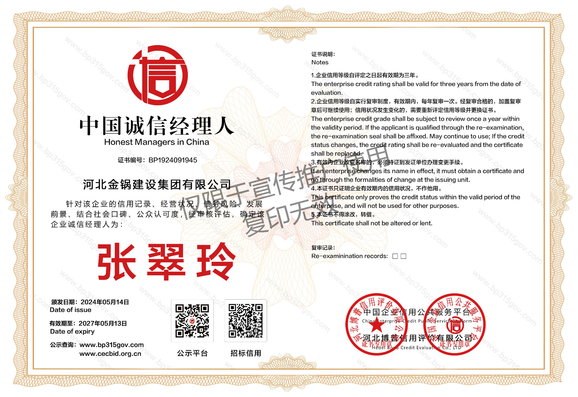 中国诚信经理人证书